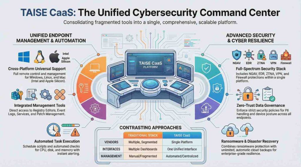 TAISE solves this. Our unified CSaaS + ITaaS model delivers production-grade security and financial-services IT resilience—at the speed and scale fintech demands.